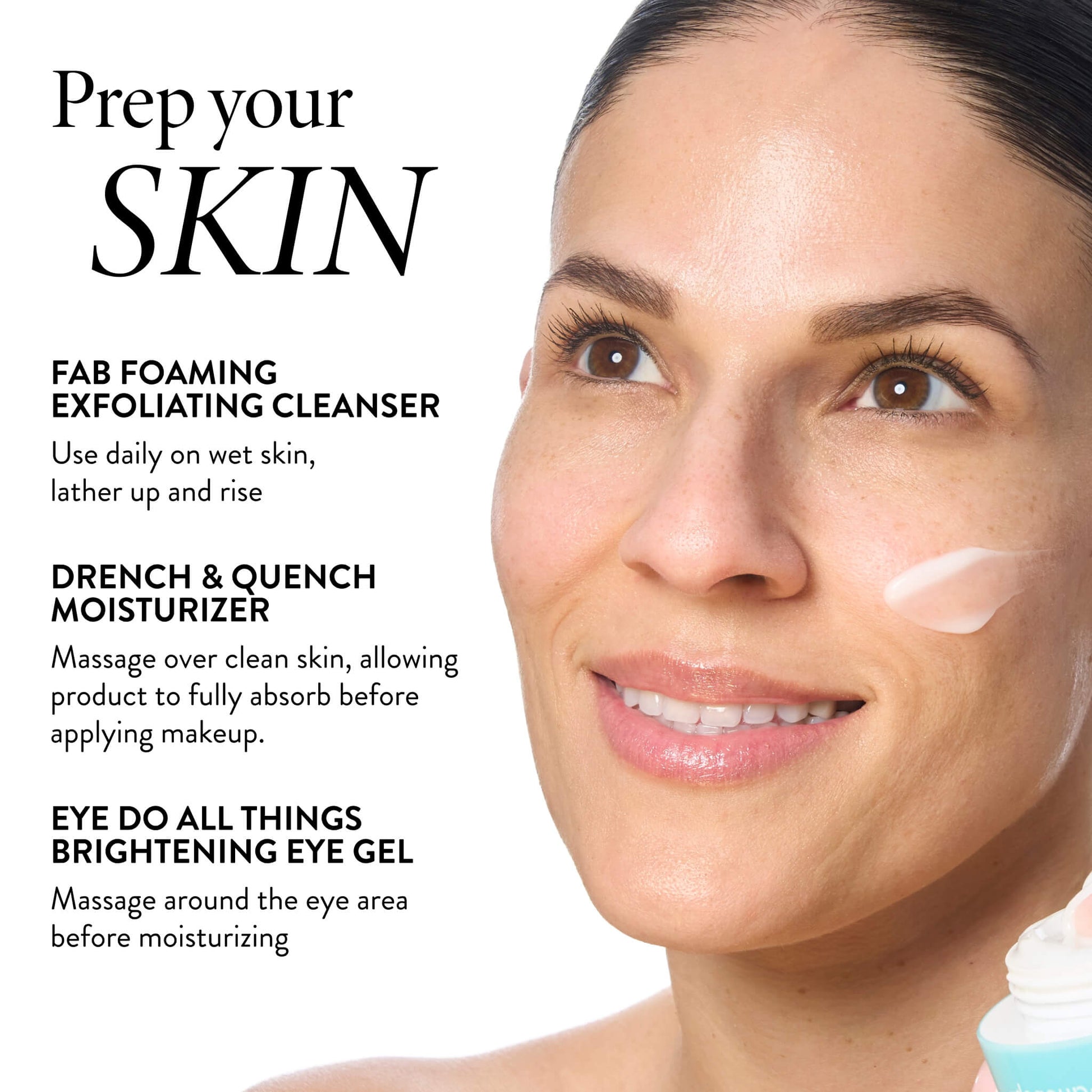 Start with Fab Foaming 2-in-1 Exfoliating Cleanser to leave skin smooth and refreshed.
